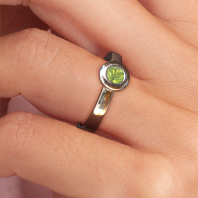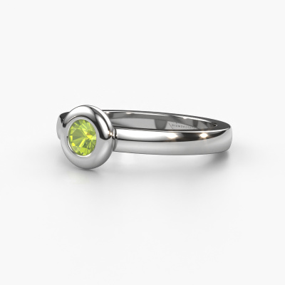 This ring called Iris is made of 14 Carat white gold and is set with peridot. Are you in the market for a unique white gold ring with a modern twist? Then this ring might suit you. Simply customize to your or her liking. It suits the contemporary modern woman. This fashionable ring is set with beautiful peridot. This has been carefully selected. Because your ring must be adorned with nothing but the most stunning gemstone. Our expert goldsmith will create your ring in our own studio, where the peridot will be set with great care. The ring will then be polished to perfection to create a stunning ring. By using a combination of the latest modern techniques, combined with ancient crafting, we can make all our rings in our own studio. Each jewel is made to order. This is advantageous because we can offer you a price you won't find anywhere else.Our team of talented, passionate designers add new ring designs to our online collection daily. Our objective in doing so, is to be able to offer you a wide variety of jewels. Please feel free to request a quote if you have specific wishes for your ring. We guarantee to make you an offer you can't refuse.To make it easier for you, we offer a 30 day return policy. Check our terms and conditions.