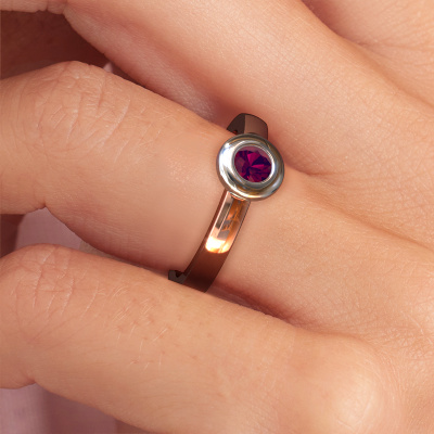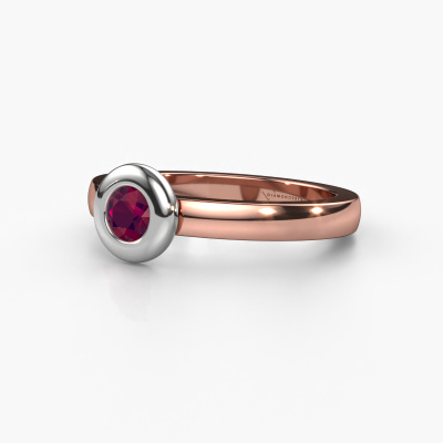 This ring called Iris is made of 14 Carat rose gold and is set with rhodolite. Are you in the market for a unique rose gold ring with a modern twist? Then this ring might suit you. Simply customize to your or her liking. It suits the contemporary modern woman. This fashionable ring is set with beautiful rhodolite. This has been carefully selected. Because your ring must be adorned with nothing but the most stunning gemstone. Our expert goldsmith will create your ring in our own studio, where the rhodolite will be set with great care. The ring will then be polished to perfection to create a stunning ring. By using a combination of the latest modern techniques, combined with ancient crafting, we can make all our rings in our own studio. Each jewel is made to order. This is advantageous because we can offer you a price you won't find anywhere else.Our team of talented, passionate designers add new ring designs to our online collection daily. Our objective in doing so, is to be able to offer you a wide variety of jewels. Please feel free to request a quote if you have specific wishes for your ring. We guarantee to make you an offer you can't refuse.To make it easier for you, we offer a 30 day return policy. Check our terms and conditions.