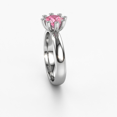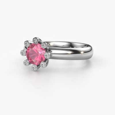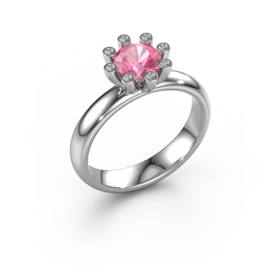 Stacked rings are the perfect addition to your ring collection. They are very popular! This platinum ring with round pink sapphire can be combined with other stacked rings or a ring you currently own. A stacked ring is a perfect reminder of a memorable moment or a loved one. Stack the milestones in your life and let the rings do the talking. This fashionable ring is called Carola 3. It was designed by our own expert goldsmiths and we still make it by hand in our own artisan studio. Simply customize to your liking!As soon as you finished designing your Carola 3 ring with our online tool, our goldsmiths will start their creative process of making your ring. This will be done with passion and care, according ancient crafting. On top of that, our jewels are made of eco-friendly materials. Simply customize online with our online tool, if you want any changes made. If you want specific changes made to your Carola 3 ring, that are unavailable in our online tool, please feel free to contact our expert designers.Because we design and deliver our own rings, we can offer you a ring at a price you won't find anywhere else. A ring is made to order, which helps prevent excess supplies, so we can make you a great price offer. We understand it feels risky, buying your ring online, but we will gladly assist in the designing process, taking your budget into consideration.To make it easier for you, we offer a 30 day return policy. Check our terms and conditions.