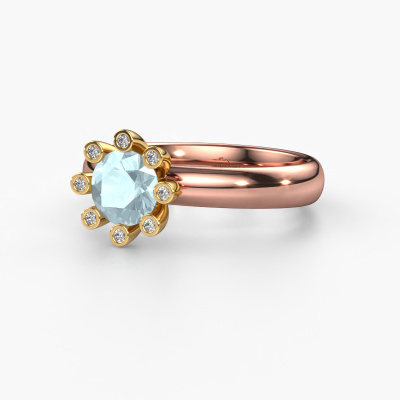 Stacked rings are the perfect addition to your ring collection. They are very popular! This 14 Carat rose gold ring with round aquamarine can be combined with other stacked rings or a ring you currently own. A stacked ring is a perfect reminder of a memorable moment or a loved one. Stack the milestones in your life and let the rings do the talking. This fashionable ring is called Carola 3. It was designed by our own expert goldsmiths and we still make it by hand in our own artisan studio. Simply customize to your liking!As soon as you finished designing your Carola 3 ring with our online tool, our goldsmiths will start their creative process of making your ring. This will be done with passion and care, according ancient crafting. On top of that, our jewels are made of eco-friendly materials. Simply customize online with our online tool, if you want any changes made. If you want specific changes made to your Carola 3 ring, that are unavailable in our online tool, please feel free to contact our expert designers.Because we design and deliver our own rings, we can offer you a ring at a price you won't find anywhere else. A ring is made to order, which helps prevent excess supplies, so we can make you a great price offer. We understand it feels risky, buying your ring online, but we will gladly assist in the designing process, taking your budget into consideration.To make it easier for you, we offer a 30 day return policy. Check our terms and conditions.