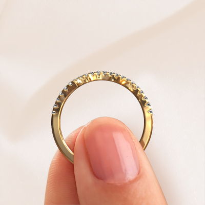 This SR0633-6 stackable ring in 14 Carat gold is set with diamond. This gold stacked SR0633-6 ring is the perfect addition to your ring collection! As the name suggests, it is a ring which can be combined on one finger with another ring. It gives you the opportunity to create your own style. A stacked ring usually represents a certain memory of someone special or a memorable moment. It is common to combine a stacked ring, representing an anniversary, with a wedding ring. But this fine ring, combined with your other rings, also makes a classy fashion item. The fine SR0633-6 stackable ring, as shown here, can be customized to your liking. Our online tool offers many different options but please feel free to contact us if you want changes made to your SR0633-6 stackable ring, which are unavailable in our online tool.Are you on a budget? Please feel free to contact us, so we can go discuss your options. We offer our rings at guaranteed best price, because we make them to order. You won't find such a price anywhere else!To make it easier for you, we offer a 30 day return policy. Check our terms and conditions.