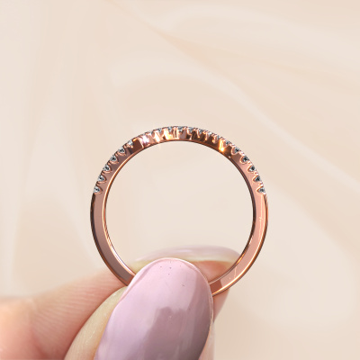 This SR0633-3 stackable ring in 14 Carat rose gold is set with lab grown diamond. This rose gold stacked SR0633-3 ring is the perfect addition to your ring collection! As the name suggests, it is a ring which can be combined on one finger with another ring. It gives you the opportunity to create your own style. A stacked ring usually represents a certain memory of someone special or a memorable moment. It is common to combine a stacked ring, representing an anniversary, with a wedding ring. But this fine ring, combined with your other rings, also makes a classy fashion item. The fine SR0633-3 stackable ring, as shown here, can be customized to your liking. Our online tool offers many different options but please feel free to contact us if you want changes made to your SR0633-3 stackable ring, which are unavailable in our online tool.Are you on a budget? Please feel free to contact us, so we can go discuss your options. We offer our rings at guaranteed best price, because we make them to order. You won't find such a price anywhere else!To make it easier for you, we offer a 30 day return policy. Check our terms and conditions.