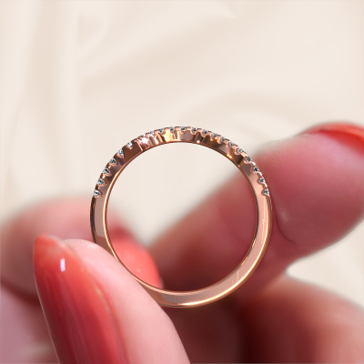 This SR0633-4 stackable ring in 14 Carat rose gold is set with lab grown diamond. This rose gold stacked SR0633-4 ring is the perfect addition to your ring collection! As the name suggests, it is a ring which can be combined on one finger with another ring. It gives you the opportunity to create your own style. A stacked ring usually represents a certain memory of someone special or a memorable moment. It is common to combine a stacked ring, representing an anniversary, with a wedding ring. But this fine ring, combined with your other rings, also makes a classy fashion item. The fine SR0633-4 stackable ring, as shown here, can be customized to your liking. Our online tool offers many different options but please feel free to contact us if you want changes made to your SR0633-4 stackable ring, which are unavailable in our online tool.Are you on a budget? Please feel free to contact us, so we can go discuss your options. We offer our rings at guaranteed best price, because we make them to order. You won't find such a price anywhere else!To make it easier for you, we offer a 30 day return policy. Check our terms and conditions.