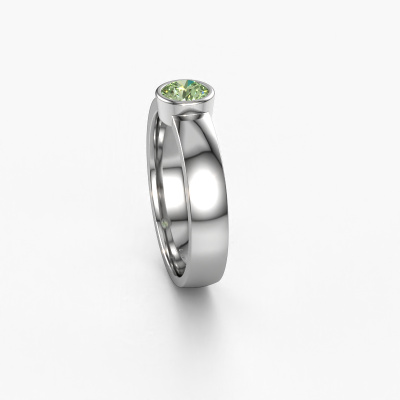 This ring called Ise 1 is made of platinum and is set with green lab grown diamond. Are you in the market for a unique platinum ring with a modern twist? Then this ring might suit you. Simply customize to your or her liking. It suits the contemporary modern woman. This fine ring is set with beautiful green lab grown diamond. This has been carefully selected. Because your ring must be adorned with nothing but the most stunning gemstone. Our expert goldsmith will create your ring in our own studio, where the green lab grown diamond will be set with great care. The ring will then be polished to perfection to create a stunning ring.