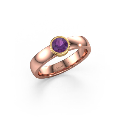 This ring called Ise 1 is made of 14 Carat rose gold and is set with amethyst. Are you in the market for a unique rose gold ring with a modern twist? Then this ring might suit you. Simply customize to your or her liking. It suits the contemporary modern woman. This fine ring is set with beautiful amethyst. This has been carefully selected. Because your ring must be adorned with nothing but the most stunning gemstone. Our expert goldsmith will create your ring in our own studio, where the amethyst will be set with great care. The ring will then be polished to perfection to create a stunning ring. Are you on a budget? Please feel free to contact us, so we can go discuss your options. We offer our rings at guaranteed best price, because we make them to order. You won't find such a price anywhere else!