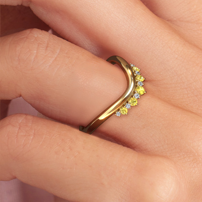Stacked rings are the perfect addition to your ring collection. They are very popular! This 14 Carat gold stackable ring with round yellow sapphire can be combined with other stacked rings or a ring you currently own. A stacked ring is a perfect reminder of a memorable moment or a loved one. Stack the milestones in your life and let the rings do the talking. This fine stackable ring is called Lyla B. It was designed by our own expert goldsmiths and we still make it by hand in our own artisan studio. Simply customize to your liking!Customize your own fineLyla B stackable ring, which will then be created by our goldsmiths with great passion. Do you prefer a different option than is shown here in the gold Lyla B stackable ring? Then our online tools offers various options. Feel free to ask us for help if you are unable to succeed. We are happy to answer your questions!After receiving your order, our goldsmiths will passionately start the creative process of making your ring in our own studio. Because we don't have a big stockpile, these costs will not be passed on to you. Our pricing is proof of that! We offer top quality jewels at lowest price, guaranteed.To make it easier for you, we offer a 30 day return policy. Check our terms and conditions.