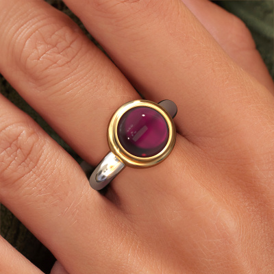 In this photo the white gold Jenae ring is set with a cabochon garnet. Cabochon means a garnet is shaped first, not faceted, into a specific shape, such as a drop, heart or round cabochon. Subsequently, it is polished until the gemstone has a orb shaped surface. A cabochon gemstone is a stunning, classy eye-catcher that matches perfectly with a contemporary as well as a vintage style. Our expert goldsmiths shape the beautiful ring to perfection which makes it unique. The cabochon garnet is set so its unique qualities are strengthened. A customized trendy ring is the perfect gift! New exquisite designs are added daily by our team of passionate goldsmiths. And each design can be customized. Simply customize the precious metals and the colour of gemstones which will be used, for example. This makes your design of the trendy Jenae ring truly unique!By using a combination of the latest modern techniques, combined with ancient crafting, we can make all our rings in our own studio. Each jewel is made to order. This is advantageous because we can offer you a price you won't find anywhere else.To make it easier for you, we offer a 30 day return policy. Check our terms and conditions.