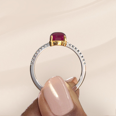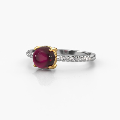 In this photo the white gold Cathie ring is set with a cabochon garnet. Cabochon means a garnet is shaped first, not faceted, into a specific shape, such as a drop, heart or round cabochon. Subsequently, it is polished until the gemstone has a orb shaped surface. A cabochon gemstone is a stunning, classy eye-catcher that matches perfectly with a contemporary as well as a vintage style. Our expert goldsmiths shape the birthstones ring to perfection which makes it unique. The cabochon garnet is set so its unique qualities are strengthened. How do you like this trendy white gold ring? Simply customize this Cathie ring, using our online tool. Subsequently, your personal birthstones Cathie ring will be made by hand by our goldsmiths. Precious metals and gemstones can be customized to your liking. Do you have specific preferences which are unavailable in our online tool? Please feel free to contact us. We will customize your personal trendy ring to your liking.By using our modern techniques, we can design and customize the finest quality jewels with the utmost care for you. Our rings are always priced 30 percent lower than other jewellers. We make rings to order, so we don't have to maintain a large stock. If you have a certain budget, we are more than happy to advice you accordingly.To make it easier for you, we offer a 30 day return policy. Check our terms and conditions.