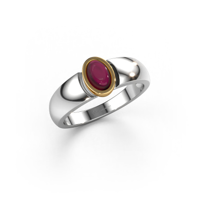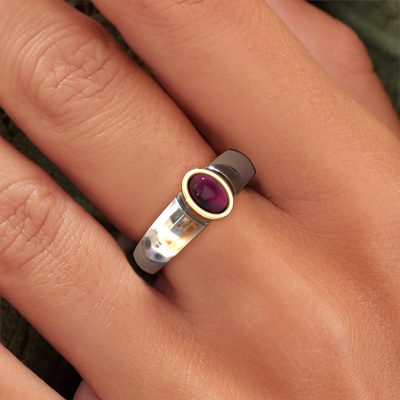 In this photo the white gold Tonneke ring is set with a cabochon garnet. Cabochon means a garnet is shaped first, not faceted, into a specific shape, such as a drop, heart or oval cabochon. Subsequently, it is polished until the gemstone has a orb shaped surface. A cabochon gemstone is a stunning, classy eye-catcher that matches perfectly with a contemporary as well as a vintage style. Our expert goldsmiths shape the tasteful ring to perfection which makes it unique. The cabochon garnet is set so its unique qualities are strengthened. A customized modern ring is the perfect gift! New exquisite designs are added daily by our team of passionate goldsmiths. And each design can be customized. Simply customize the precious metals and the colour of gemstones which will be used, for example. This makes your design of the modern Tonneke ring truly unique!Because we design and deliver our own rings, we can offer you a ring at a price you won't find anywhere else. A ring is made to order, which helps prevent excess supplies, so we can make you a great price offer. We understand it feels risky, buying your ring online, but we will gladly assist in the designing process, taking your budget into consideration.To make it easier for you, we offer a 30 day return policy. Check our terms and conditions.