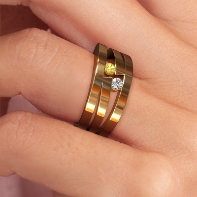 This ring is called Valerie. It is made of 14 Carat gold and is set with 2.7 mm yellow sapphire. Are you looking for a unique gold ring with a modern appearance? Then this is the ring for you. Simply customize to your or her liking. Perfect for a modern, contemporary woman! This 2 stones ring is adorned with stunning yellow sapphire. It was carefully selected because your ring must be adorned with nothing but the most beautiful gemstones. Our expert goldsmith will create your ring in our own studio, where the yellow sapphire will be set with great care. The ring will then be polished to perfection to create a beautiful ring. By using a combination of the latest modern techniques, combined with ancient crafting, we can make all our rings in our own studio. Each jewel is made to order. This is advantageous because we can offer you a price you won't find anywhere else.New jewellery designs are added to our online collection daily. Our team of passionate designers strive to create extraordinary and diverse designs. Have you seen a ring you like? Please feel free to contact us. Based on a good price/ quality ratio, we will make you an offer you can't refuse!To make it easier for you, we offer a 30 day return policy. Check our terms and conditions.