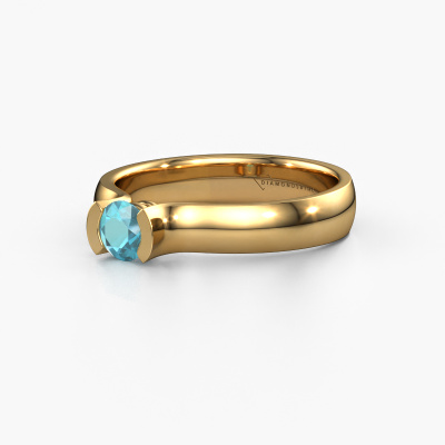 This ring is called Ophelia. It is made of 14 Carat gold and is set with 4.2 mm blue topaz. Are you looking for a unique gold ring with a modern appearance? Then this is the ring for you. Simply customize to your or her liking. Perfect for a modern, contemporary woman! This affordable ring is adorned with stunning blue topaz. It was carefully selected because your ring must be adorned with nothing but the most beautiful gemstones. Our expert goldsmith will create your ring in our own studio, where the blue topaz will be set with great care. The ring will then be polished to perfection to create a beautiful ring. By using a combination of the latest modern techniques, combined with ancient crafting, we can make all our rings in our own studio. Each jewel is made to order. This is advantageous because we can offer you a price you won't find anywhere else.Our team of talented, passionate designers add new ring designs to our online collection daily. Our objective in doing so, is to be able to offer you a wide variety of jewels. Please feel free to request a quote if you have specific wishes for your ring. We guarantee to make you an offer you can't refuse.To make it easier for you, we offer a 30 day return policy. Check our terms and conditions.