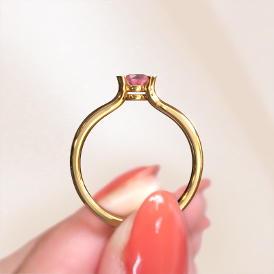 This ring is called Ophelia. It is made of 14 Carat gold and is set with 4.2 mm tourmaline pink. Are you looking for a unique gold ring with a modern appearance? Then this is the ring for you. Simply customize to your or her liking. Perfect for a modern, contemporary woman! This affordable ring is adorned with stunning tourmaline pink. It was carefully selected because your ring must be adorned with nothing but the most beautiful gemstones. Our expert goldsmith will create your ring in our own studio, where the tourmaline pink will be set with great care. The ring will then be polished to perfection to create a beautiful ring. By using a combination of the latest modern techniques, combined with ancient crafting, we can make all our rings in our own studio. Each jewel is made to order. This is advantageous because we can offer you a price you won't find anywhere else.Our team of talented, passionate designers add new ring designs to our online collection daily. Our objective in doing so, is to be able to offer you a wide variety of jewels. Please feel free to request a quote if you have specific wishes for your ring. We guarantee to make you an offer you can't refuse.To make it easier for you, we offer a 30 day return policy. Check our terms and conditions.