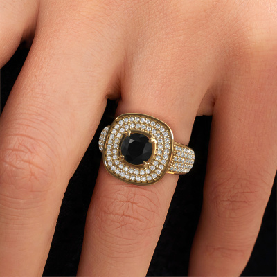This exclusive gold Eliana ring is a true work of art! This ring is made of 14 Carat gold and is set with 1.70 crt round black diamond. The smallest ornaments are crafted by our goldsmith with a lot of patience and great passion. In order to create this ring with great precision, this craft requires a keen eye and a skilful hand. A challenge which ignites a fire in our expert goldsmiths. The exquisite black diamonds are set in a way that their unique qualities are strengthened. This gives the ring an even more glamorous appearance. The ring is unique by itself though, because of the natural birthstones we selected especially for this Eliana ring. And by choosing the precious metal yourself, you create a unique ring. As soon as you finished designing your Eliana ring with our online tool, our goldsmiths will start their creative process of making your ring. This will be done with passion and care, according ancient crafting. On top of that, our jewels are made of eco-friendly materials. Simply customize online with our online tool, if you want any changes made. If you want specific changes made to your Eliana ring, that are unavailable in our online tool, please feel free to contact our expert designers.By using a combination of the latest modern techniques, combined with ancient crafting, we can make all our rings in our own studio. Each jewel is made to order. This is advantageous because we can offer you a price you won't find anywhere else.To make it easier for you, we offer a 30 day return policy. Check our terms and conditions.