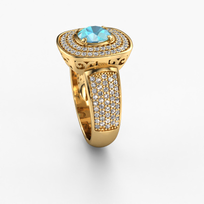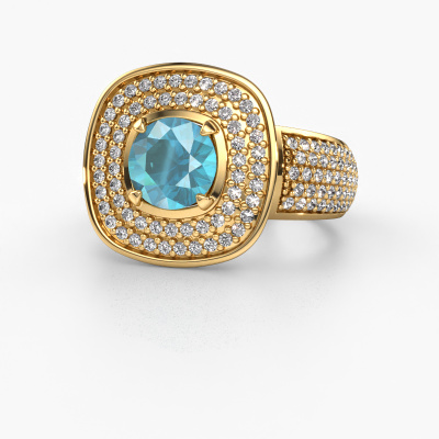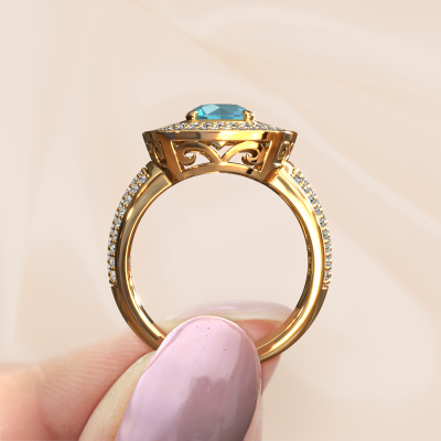 This exclusive gold Eliana ring is a true work of art! This ring is made of 14 Carat gold and is set with 6 mm round blue topaz. The smallest ornaments are crafted by our goldsmith with a lot of patience and great passion. In order to create this ring with great precision, this craft requires a keen eye and a skilful hand. A challenge which ignites a fire in our expert goldsmiths. The exquisite blue topaz are set in a way that their unique qualities are strengthened. This gives the ring an even more glamorous appearance. The ring is unique by itself though, because of the natural birthstones we selected especially for this Eliana ring. And by choosing the precious metal yourself, you create a unique ring. As soon as you finished designing your Eliana ring with our online tool, our goldsmiths will start their creative process of making your ring. This will be done with passion and care, according ancient crafting. On top of that, our jewels are made of eco-friendly materials. Simply customize online with our online tool, if you want any changes made. If you want specific changes made to your Eliana ring, that are unavailable in our online tool, please feel free to contact our expert designers.By using a combination of the latest modern techniques, combined with ancient crafting, we can make all our rings in our own studio. Each jewel is made to order. This is advantageous because we can offer you a price you won't find anywhere else.To make it easier for you, we offer a 30 day return policy. Check our terms and conditions.