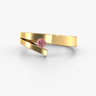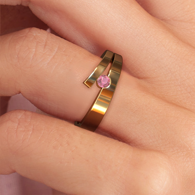 This ring is called Rosario. It is made of 14 Carat gold and is set with 3 mm tourmaline pink. Are you looking for a unique gold ring with a modern appearance? Then this is the ring for you. Simply customize to your or her liking. Perfect for a modern, contemporary woman! This edgy ring is adorned with stunning tourmaline pink. It was carefully selected because your ring must be adorned with nothing but the most beautiful gemstones. Our expert goldsmith will create your ring in our own studio, where the tourmaline pink will be set with great care. The ring will then be polished to perfection to create a beautiful ring. Are you on a budget? Please feel free to contact us, so we can go discuss your options. We offer our rings at guaranteed best price, because we make them to order. You won't find such a price anywhere else!