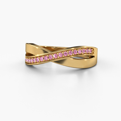 This ring is called Kaley. It is made of 14 Carat gold and is set with 1.2 mm pink sapphire. Are you looking for a unique gold ring with a modern appearance? Then this is the ring for you. Simply customize to your or her liking. Perfect for a modern, contemporary woman! This elegant ring is adorned with stunning pink sapphire. It was carefully selected because your ring must be adorned with nothing but the most beautiful gemstones. Our expert goldsmith will create your ring in our own studio, where the pink sapphire will be set with great care. The ring will then be polished to perfection to create a beautiful ring. By using a combination of the latest modern techniques, combined with ancient crafting, we can make all our rings in our own studio. Each jewel is made to order. This is advantageous because we can offer you a price you won't find anywhere else.New jewellery designs are added to our online collection daily. Our team of passionate designers strive to create extraordinary and diverse designs. Have you seen a ring you like? Please feel free to contact us. Based on a good price/ quality ratio, we will make you an offer you can't refuse!To make it easier for you, we offer a 30 day return policy. Check our terms and conditions.