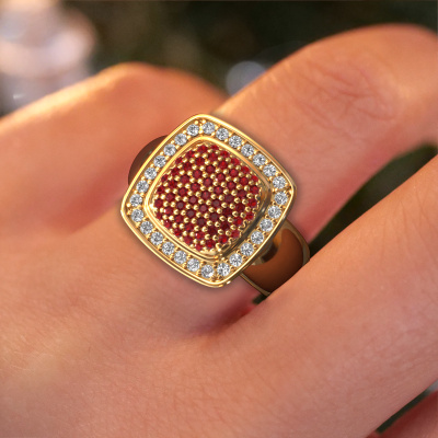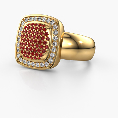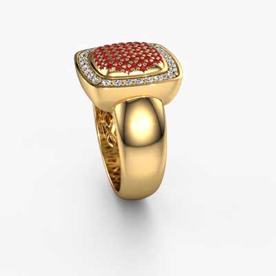 This ring is called Paige. It is made of 14 Carat gold and is set with 0.9 mm ruby. Are you looking for a unique gold ring with a modern appearance? Then this is the ring for you. Simply customize to your or her liking. Perfect for a modern, contemporary woman! This elegant ring is adorned with stunning ruby. It was carefully selected because your ring must be adorned with nothing but the most beautiful gemstones. Our expert goldsmith will create your ring in our own studio, where the ruby will be set with great care. The ring will then be polished to perfection to create a beautiful ring. After receiving your order, our goldsmiths will passionately start the creative process of making your ring in our own studio. Because we don't have a big stockpile, these costs will not be passed on to you. Our pricing is proof of that! We offer top quality jewels at lowest price, guaranteed.