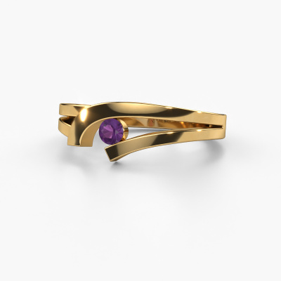 This ring is called Yentl. It is made of 14 Carat gold and is set with 3 mm amethyst. Are you looking for a unique gold ring with a modern appearance? Then this is the ring for you. Simply customize to your or her liking. Perfect for a modern, contemporary woman! This fantasy ring is adorned with stunning amethyst. It was carefully selected because your ring must be adorned with nothing but the most beautiful gemstones. Our expert goldsmith will create your ring in our own studio, where the amethyst will be set with great care. The ring will then be polished to perfection to create a beautiful ring. By using our modern techniques, we can design and customize the finest quality jewels with the utmost care for you. Our rings are always priced 30 percent lower than other jewellers. We make rings to order, so we don't have to maintain a large stock. If you have a certain budget, we are more than happy to advice you accordingly.Our team of talented, passionate designers add new ring designs to our online collection daily. Our objective in doing so, is to be able to offer you a wide variety of jewels. Please feel free to request a quote if you have specific wishes for your ring. We guarantee to make you an offer you can't refuse.To make it easier for you, we offer a 30 day return policy. Check our terms and conditions.