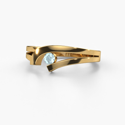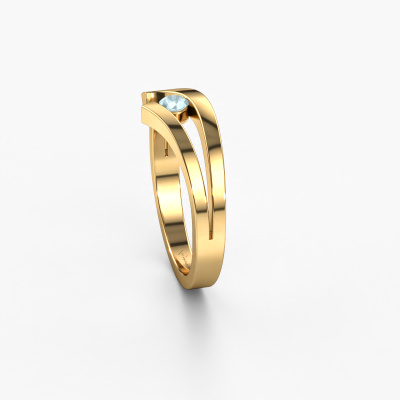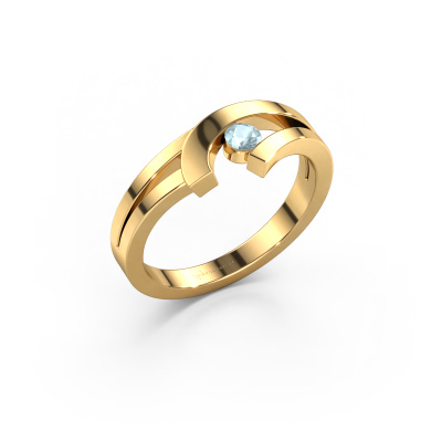 This ring is called Yentl. It is made of 14 Carat gold and is set with 3 mm aquamarine. Are you looking for a unique gold ring with a modern appearance? Then this is the ring for you. Simply customize to your or her liking. Perfect for a modern, contemporary woman! This fantasy ring is adorned with stunning aquamarine. It was carefully selected because your ring must be adorned with nothing but the most beautiful gemstones. Our expert goldsmith will create your ring in our own studio, where the aquamarine will be set with great care. The ring will then be polished to perfection to create a beautiful ring. By using our modern techniques, we can design and customize the finest quality jewels with the utmost care for you. Our rings are always priced 30 percent lower than other jewellers. We make rings to order, so we don't have to maintain a large stock. If you have a certain budget, we are more than happy to advice you accordingly.Our team of talented, passionate designers add new ring designs to our online collection daily. Our objective in doing so, is to be able to offer you a wide variety of jewels. Please feel free to request a quote if you have specific wishes for your ring. We guarantee to make you an offer you can't refuse.To make it easier for you, we offer a 30 day return policy. Check our terms and conditions.