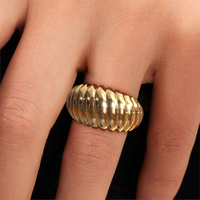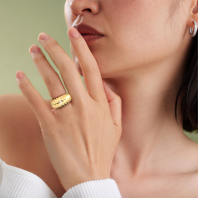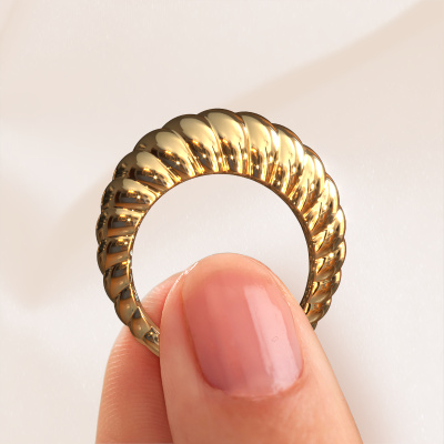 What a graceful ring indeed! This ring is called Tova 3. A classy graceful ring, that suits the contemporary, fashionable woman. This ring is proof of our new method of crafting. We came up with a process in our own studio in which the old as well as new ways of crafting are unified in perfect harmony. We make a detailed 3D design of the intended ring. Then our expert goldsmith crafts your ring into perfection. A unique ring, styled to your liking. How do you like this modern gold ring? Simply customize this Tova 3 ring, using our online tool. Subsequently, your personal graceful Tova 3 ring will be made by hand by our goldsmiths. Precious metals and gemstones can be customized to your liking. Do you have specific preferences which are unavailable in our online tool? Please feel free to contact us. We will customize your personal modern ring to your liking.Because we design and deliver our own rings, we can offer you a ring at a price you won't find anywhere else. A ring is made to order, which helps prevent excess supplies, so we can make you a great price offer. We understand it feels risky, buying your ring online, but we will gladly assist in the designing process, taking your budget into consideration.To make it easier for you, we offer a 30 day return policy. Check our terms and conditions.