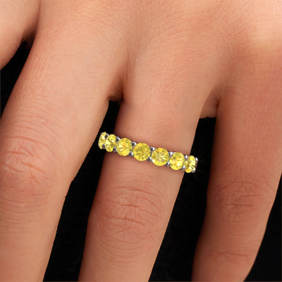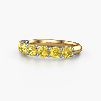 This ring is called Heddy Half. It is made of 14 Carat gold and is set with 3.7 mm yellow sapphire. Are you looking for a unique gold ring with a modern appearance? Then this is the ring for you. Simply customize to your or her liking. Perfect for a modern, contemporary woman! This half eternity ring is adorned with stunning yellow sapphire. It was carefully selected because your ring must be adorned with nothing but the most beautiful gemstones. Our expert goldsmith will create your ring in our own studio, where the yellow sapphire will be set with great care. The ring will then be polished to perfection to create a beautiful ring. Are you on a budget? Please feel free to contact us, so we can go discuss your options. We offer our rings at guaranteed best price, because we make them to order. You won't find such a price anywhere else!Our team of talented, passionate designers add new ring designs to our online collection daily. Our objective in doing so, is to be able to offer you a wide variety of jewels. Please feel free to request a quote if you have specific wishes for your ring. We guarantee to make you an offer you can't refuse.To make it easier for you, we offer a 30 day return policy. Check our terms and conditions.