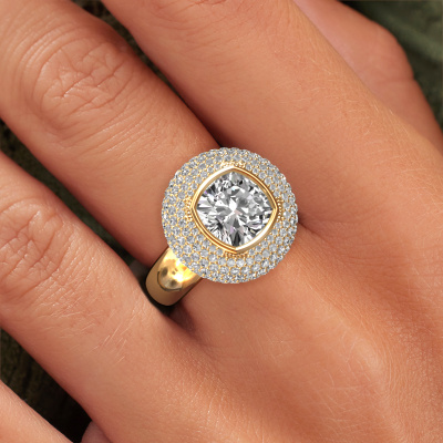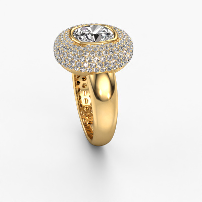 This exclusive gold Keshia ring is a true work of art! This ring is made of 14 Carat gold and is set with 3.803 crt cushion lab grown diamond. The smallest ornaments are crafted by our goldsmith with a lot of patience and great passion. In order to create this ring with great precision, this craft requires a keen eye and a skilful hand. A challenge which ignites a fire in our expert goldsmiths. The exquisite lab-grown diamonds are set in a way that their unique qualities are strengthened. This gives the ring an even more glamorous appearance. The ring is unique by itself though, because of the natural birthstones we selected especially for this Keshia ring. And by choosing the precious metal yourself, you create a unique ring. Our goldsmiths passionately create your customized ring to your liking with the utmost care. The gold ring, as shown here, can be customized using our online tool. Feel free to ask our jewel designers for assistance if you want changes made which are unavailable in our online tool. We are happy to answer your questions.By using our modern techniques, we can design and customize the finest quality jewels with the utmost care for you. Our rings are always priced 30 percent lower than other jewellers. We make rings to order, so we don't have to maintain a large stock. If you have a certain budget, we are more than happy to advice you accordingly.To make it easier for you, we offer a 30 day return policy. Check our terms and conditions.
