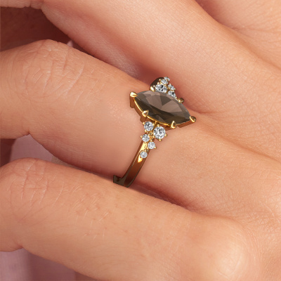 How would you describe your own style? Are you looking for something uniquely different? This daring gold Royce MRQ ring is astonishing! Simply customize to your or her own liking. This ring is set with smokey quartz. These smokey quartz have been