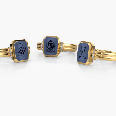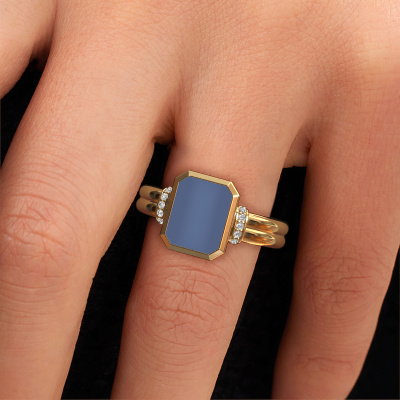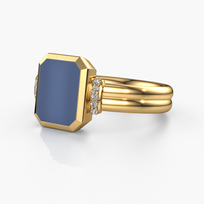 This gold women´s signet ring is a true work of art! This is our contemporary Gwenn 3 signet ring and it is set with a octagon blue sardonyx. In our crafting studio, we use a combination of the latest techniques and ancient traditional craftsmanship, so we are able to create a detailed perfect signet ring. Our expert goldsmiths are fascinated by signet rings. The signet ring can be engraved with initials or a family weapon. Signet rings with family weapons can be handed down from generation to generation and that usually is the case. On top of that, a signet ring is a beautiful, classy piece of jewellery which is trending once more. More than one reason to start or extend the tradition. Please browse our online database for more options on engravings. You can find the departments of our education centre at the bottom of this page. The contemporary Gwenn 3 signet ring, as shown here, can be customized to your liking. Our online tool offers many different options but please feel free to contact us if you want changes made to your Gwenn 3 signet ring, which are unavailable in our online tool.By using a combination of the latest modern techniques, combined with ancient crafting, we can make all our rings in our own studio. Each jewel is made to order. This is advantageous because we can offer you a price you won't find anywhere else.To make it easier for you, we offer a 30 day return policy. Check our terms and conditions.