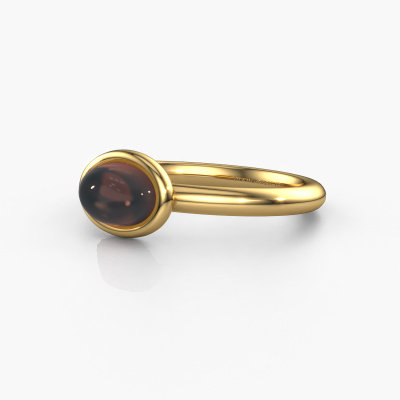 In this photo the gold Blossom OVL ring is set with a cabochon smokey quartz. Cabochon means a smokey quartz is shaped first, not faceted, into a specific shape, such as a drop, heart or oval cabochon. Subsequently, it is polished until the gemstone has a orb shaped surface. A cabochon gemstone is a stunning, classy eye-catcher that matches perfectly with a contemporary as well as a vintage style. Our expert goldsmiths shape the elegant ring to perfection which makes it unique. The cabochon smokey quartz is set so its unique qualities are strengthened. Customize your own elegantBlossom OVL ring, which will then be created by our goldsmiths with great passion. Do you prefer a different option than is shown here in the gold Blossom OVL ring? Then our online tools offers various options. Feel free to ask us for help if you are unable to succeed. We are happy to answer your questions!By using a combination of the latest modern techniques, combined with ancient crafting, we can make all our rings in our own studio. Each jewel is made to order. This is advantageous because we can offer you a price you won't find anywhere else.To make it easier for you, we offer a 30 day return policy. Check our terms and conditions.