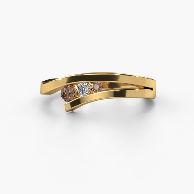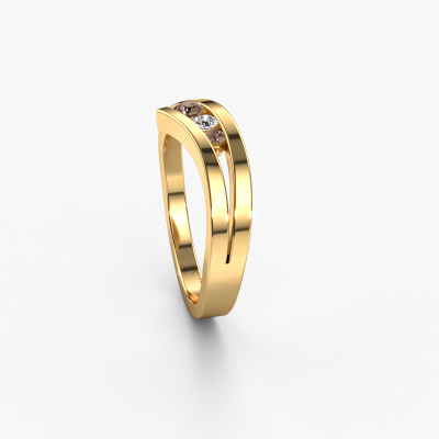 This ring is called Evalyn 2. It is made of 14 Carat gold and is set with 0.09 crt brown diamond. Are you looking for a unique gold ring with a modern appearance? Then this is the ring for you. Simply customize to your or her liking. Perfect for a modern, contemporary woman! This refined ring is adorned with stunning brown diamond. It was carefully selected because your ring must be adorned with nothing but the most beautiful gemstones. Our expert goldsmith will create your ring in our own studio, where the brown diamond will be set with great care. The ring will then be polished to perfection to create a beautiful ring. Are you on a budget? Please feel free to contact us, so we can go discuss your options. We offer our rings at guaranteed best price, because we make them to order. You won't find such a price anywhere else!Our talented designers add new designs to our online collection daily. Together they create a diverse collection of the finest jewellery. If you prefer to make a ring according your own design, please feel free to request a quote. We will make you an amazing offer, based on quality and price.To make it easier for you, we offer a 30 day return policy. Check our terms and conditions.