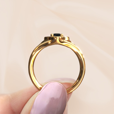 This symbolic gold Eura ring is set with black diamond. For some, a ring is nothing more than a beautiful fashion item but they can become a meaningful keepsake. A ring such as this can be worn daily and it matches numerous different styles. Designing your own unique ring, makes it even more special. You are reminded of its uniqueness every time you look at it. Perhaps it reminds you of someone special. It might bring back memories. Unforgettable moments, represented in one ring. The beauty of it all is that the used precious metals and gemstones will last a lifetime. A lifetime of memories deserves nothing less! The best part of this symbolic ring is that you can customize it to your own liking. Your style, your choice, your ring. On top of that, your fantasy gold ring will be made by hand with eco-friendly materials! Please feel free to easily customize the ring, using our online tool.Because we design and deliver our own rings, we can offer you a ring at a price you won't find anywhere else. A ring is made to order, which helps prevent excess supplies, so we can make you a great price offer. We understand it feels risky, buying your ring online, but we will gladly assist in the designing process, taking your budget into consideration.To make it easier for you, we offer a 30 day return policy. Check our terms and conditions.