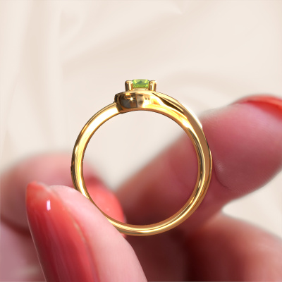 How would you describe your own style? Are you looking for something uniquely different? This special gold Zara ring is astonishing! Simply customize to your or her own liking. This ring is set with peridot. These peridot have been carefully selected because your ring must be adorned with nothing but the most beautiful gemstone. Wouldn't you agree? Our expert goldsmith will create your ring in our own crafting studios, where the peridot will be set with care. The ring will then be polished to perfection to give it that extra sparkle. It's a perfect ring for a woman of excellent taste!Our goldsmiths passionately create your customized ring to your liking with the utmost care. The gold ring, as shown here, can be customized using our online tool. Feel free to ask our jewel designers for assistance if you want changes made which are unavailable in our online tool. We are happy to answer your questions.By using a combination of the latest modern techniques, combined with ancient crafting, we can make all our rings in our own studio. Each jewel is made to order. This is advantageous because we can offer you a price you won't find anywhere else.To make it easier for you, we offer a 30 day return policy. Check our terms and conditions.