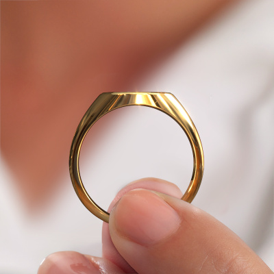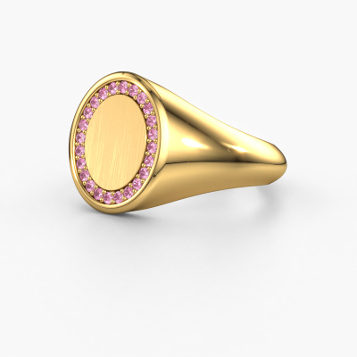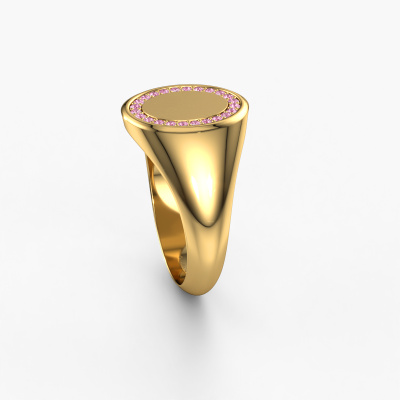 This gold women´s signet ring is a true work of art! This is our charming Rosy Oval 2 signet ring and it is set with a round pink sapphire. In our crafting studio, we use a combination of the latest techniques and ancient traditional craftsmanship,