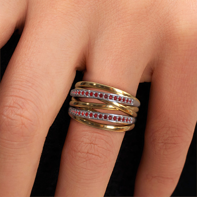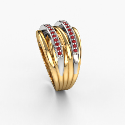 How would you describe your own style? Are you looking for something uniquely different? This split band gold Annabel 2 ring is astonishing! Simply customize to your or her own liking. This ring is set with ruby. These ruby have been carefully selected because your ring must be adorned with nothing but the most beautiful gemstone. Wouldn't you agree? Our expert goldsmith will create your ring in our own crafting studios, where the ruby will be set with care. The ring will then be polished to perfection to give it that extra sparkle. It's a perfect ring for a woman of excellent taste!The best part of this split band ring is that you can customize it to your own liking. Your style, your choice, your ring. On top of that, your fantasy gold ring will be made by hand with eco-friendly materials! Please feel free to easily customize the ring, using our online tool.Are you on a budget? Please feel free to contact us, so we can go discuss your options. We offer our rings at guaranteed best price, because we make them to order. You won't find such a price anywhere else!To make it easier for you, we offer a 30 day return policy. Check our terms and conditions.