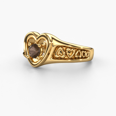 This symbolic gold Eura ring is set with smokey quartz. For some, a ring is nothing more than a beautiful fashion item but they can become a meaningful keepsake. A ring such as this can be worn daily and it matches numerous different styles. Designing your own unique ring, makes it even more special. You are reminded of its uniqueness every time you look at it. Perhaps it reminds you of someone special. It might bring back memories. Unforgettable moments, represented in one ring. The beauty of it all is that the used precious metals and gemstones will last a lifetime. A lifetime of memories deserves nothing less! The best part of this symbolic ring is that you can customize it to your own liking. Your style, your choice, your ring. On top of that, your fantasy gold ring will be made by hand with eco-friendly materials! Please feel free to easily customize the ring, using our online tool.Because we design and deliver our own rings, we can offer you a ring at a price you won't find anywhere else. A ring is made to order, which helps prevent excess supplies, so we can make you a great price offer. We understand it feels risky, buying your ring online, but we will gladly assist in the designing process, taking your budget into consideration.To make it easier for you, we offer a 30 day return policy. Check our terms and conditions.