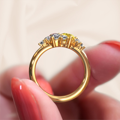How would you describe your own style? Are you looking for something uniquely different? This graceful gold Veronica ring is astonishing! Simply customize to your or her own liking. This ring is set with yellow sapphire. These yellow sapphire have been carefully selected because your ring must be adorned with nothing but the most beautiful gemstone. Wouldn't you agree? Our expert goldsmith will create your ring in our own crafting studios, where the yellow sapphire will be set with care. The ring will then be polished to perfection to give it that extra sparkle. It's a perfect ring for a woman of excellent taste!Customize your own gracefulVeronica ring, which will then be created by our goldsmiths with great passion. Do you prefer a different option than is shown here in the gold Veronica ring? Then our online tools offers various options. Feel free to ask us for help if you are unable to succeed. We are happy to answer your questions!By using our modern techniques, we can design and customize the finest quality jewels with the utmost care for you. Our rings are always priced 30 percent lower than other jewellers. We make rings to order, so we don't have to maintain a large stock. If you have a certain budget, we are more than happy to advice you accordingly.To make it easier for you, we offer a 30 day return policy. Check our terms and conditions.