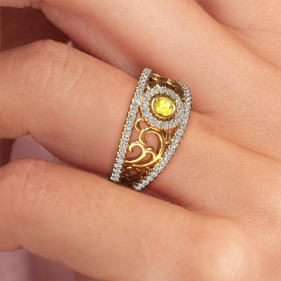 How would you describe your own style? Are you looking for something uniquely different? This special gold Lavona ring is astonishing! Simply customize to your or her own liking. This ring is set with yellow sapphire. These yellow sapphire have been carefully selected because your ring must be adorned with nothing but the most beautiful gemstone. Wouldn't you agree? Our expert goldsmith will create your ring in our own crafting studios, where the yellow sapphire will be set with care. The ring will then be polished to perfection to give it that extra sparkle. It's a perfect ring for a woman of excellent taste!Customize your own specialLavona ring, which will then be created by our goldsmiths with great passion. Do you prefer a different option than is shown here in the gold Lavona ring? Then our online tools offers various options. Feel free to ask us for help if you are unable to succeed. We are happy to answer your questions!Are you on a budget? Please feel free to contact us, so we can go discuss your options. We offer our rings at guaranteed best price, because we make them to order. You won't find such a price anywhere else!To make it easier for you, we offer a 30 day return policy. Check our terms and conditions.
