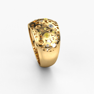 How would you describe your own style? Are you looking for something uniquely different? This wide gold Jaylinn ring is astonishing! Simply customize to your or her own liking. This ring is set with yellow sapphire. These yellow sapphire have been carefully selected because your ring must be adorned with nothing but the most beautiful gemstone. Wouldn't you agree? Our expert goldsmith will create your ring in our own crafting studios, where the yellow sapphire will be set with care. The ring will then be polished to perfection to give it that extra sparkle. It's a perfect ring for a woman of excellent taste!How do you like this fantasy gold ring? Simply customize this Jaylinn ring, using our online tool. Subsequently, your personal wide Jaylinn ring will be made by hand by our goldsmiths. Precious metals and gemstones can be customized to your liking. Do you have specific preferences which are unavailable in our online tool? Please feel free to contact us. We will customize your personal fantasy ring to your liking.By using our modern techniques, we can design and customize the finest quality jewels with the utmost care for you. Our rings are always priced 30 percent lower than other jewellers. We make rings to order, so we don't have to maintain a large stock. If you have a certain budget, we are more than happy to advice you accordingly.To make it easier for you, we offer a 30 day return policy. Check our terms and conditions.