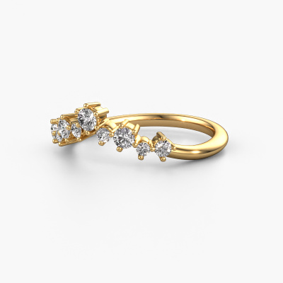 This Carly B stackable ring in 14 Carat gold is set with zirconia. This gold stacked Carly B ring is the perfect addition to your ring collection! As the name suggests, it is a ring which can be combined on one finger with another ring. It gives you the opportunity to create your own style. A stacked ring usually represents a certain memory of someone special or a memorable moment. It is common to combine a stacked ring, representing an anniversary, with a wedding ring. But this fashionable ring, combined with your other rings, also makes a classy fashion item. As soon as you finished designing your Carly B stackable ring with our online tool, our goldsmiths will start their creative process of making your ring. This will be done with passion and care, according ancient crafting. On top of that, our jewels are made of eco-friendly materials. Simply customize online with our online tool, if you want any changes made. If you want specific changes made to your Carly B stackable ring, that are unavailable in our online tool, please feel free to contact our expert designers.After receiving your order, our goldsmiths will start the creative process of making your Carly B ring. We don't keep stock. This is advantageous because these costs will not be passed on to you. Therefore, we can offer jewellery at exceptionally low prices.To make it easier for you, we offer a 30 day return policy. Check our terms and conditions.