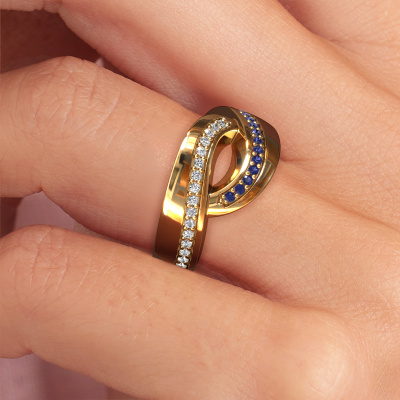 This exclusive gold Sharita ring is a true work of art! This ring is made of 14 Carat gold and is set with 1.2 mm round sapphire. The smallest ornaments are crafted by our goldsmith with a lot of patience and great passion. In order to create this ring with great precision, this craft requires a keen eye and a skilful hand. A challenge which ignites a fire in our expert goldsmiths. The exquisite sapphire are set in a way that their unique qualities are strengthened. This gives the ring an even more glamorous appearance. The ring is unique by itself though, because of the natural birthstones we selected especially for this Sharita ring. And by choosing the precious metal yourself, you create a unique ring. Our goldsmiths passionately create your customized ring to your liking with the utmost care. The gold ring, as shown here, can be customized using our online tool. Feel free to ask our jewel designers for assistance if you want changes made which are unavailable in our online tool. We are happy to answer your questions.After receiving your order, our goldsmiths will start the creative process of making your Sharita ring. We don't keep stock. This is advantageous because these costs will not be passed on to you. Therefore, we can offer jewellery at exceptionally low prices.To make it easier for you, we offer a 30 day return policy. Check our terms and conditions.