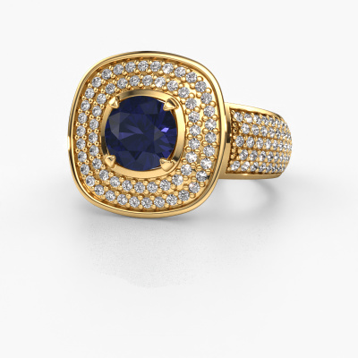 This exclusive gold Eliana ring is a true work of art! This ring is made of 14 Carat gold and is set with 6 mm round sapphire. The smallest ornaments are crafted by our goldsmith with a lot of patience and great passion. In order to create this ring with great precision, this craft requires a keen eye and a skilful hand. A challenge which ignites a fire in our expert goldsmiths. The exquisite sapphire are set in a way that their unique qualities are strengthened. This gives the ring an even more glamorous appearance. The ring is unique by itself though, because of the natural birthstones we selected especially for this Eliana ring. And by choosing the precious metal yourself, you create a unique ring. As soon as you finished designing your Eliana ring with our online tool, our goldsmiths will start their creative process of making your ring. This will be done with passion and care, according ancient crafting. On top of that, our jewels are made of eco-friendly materials. Simply customize online with our online tool, if you want any changes made. If you want specific changes made to your Eliana ring, that are unavailable in our online tool, please feel free to contact our expert designers.By using a combination of the latest modern techniques, combined with ancient crafting, we can make all our rings in our own studio. Each jewel is made to order. This is advantageous because we can offer you a price you won't find anywhere else.To make it easier for you, we offer a 30 day return policy. Check our terms and conditions.