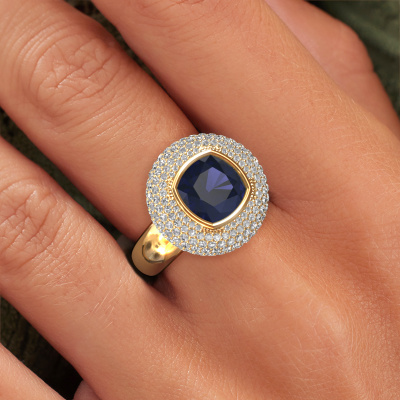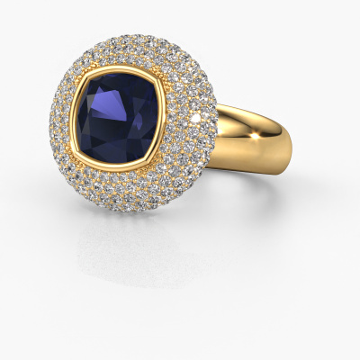 This exclusive gold Keshia ring is a true work of art! This ring is made of 14 Carat gold and is set with 8 mm cushion sapphire. The smallest ornaments are crafted by our goldsmith with a lot of patience and great passion. In order to create this ring with great precision, this craft requires a keen eye and a skilful hand. A challenge which ignites a fire in our expert goldsmiths. The exquisite sapphire are set in a way that their unique qualities are strengthened. This gives the ring an even more glamorous appearance. The ring is unique by itself though, because of the natural birthstones we selected especially for this Keshia ring. And by choosing the precious metal yourself, you create a unique ring. Our goldsmiths passionately create your customized ring to your liking with the utmost care. The gold ring, as shown here, can be customized using our online tool. Feel free to ask our jewel designers for assistance if you want changes made which are unavailable in our online tool. We are happy to answer your questions.By using our modern techniques, we can design and customize the finest quality jewels with the utmost care for you. Our rings are always priced 30 percent lower than other jewellers. We make rings to order, so we don't have to maintain a large stock. If you have a certain budget, we are more than happy to advice you accordingly.To make it easier for you, we offer a 30 day return policy. Check our terms and conditions.