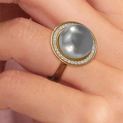 This ring is called Grisel. It is made of 14 Carat gold and is set with 12 mm grey pearl. Are you looking for a unique gold ring with a modern appearance? Then this is the ring for you. Simply customize to your or her liking. Perfect for a modern, contemporary woman! This tasteful ring is adorned with stunning grey pearl. It was carefully selected because your ring must be adorned with nothing but the most beautiful gemstones. Our expert goldsmith will create your ring in our own studio, where the grey pearl will be set with great care. The ring will then be polished to perfection to create a beautiful ring. After receiving your order, our goldsmiths will passionately start the creative process of making your ring in our own studio. Because we don't have a big stockpile, these costs will not be passed on to you. Our pricing is proof of that! We offer top quality jewels at lowest price, guaranteed.Our team of talented, passionate designers add new ring designs to our online collection daily. Our objective in doing so, is to be able to offer you a wide variety of jewels. Please feel free to request a quote if you have specific wishes for your ring. We guarantee to make you an offer you can't refuse.To make it easier for you, we offer a 30 day return policy. Check our terms and conditions.