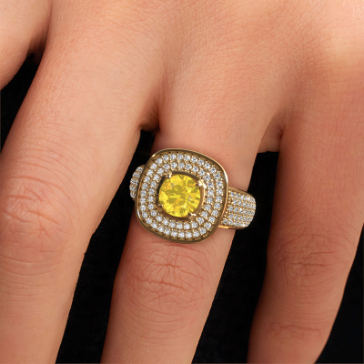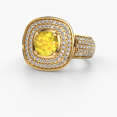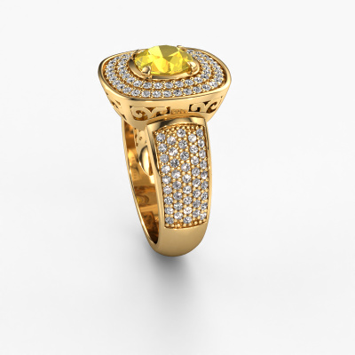 This exclusive gold Eliana ring is a true work of art! This ring is made of 14 Carat gold and is set with 6 mm round yellow sapphire. The smallest ornaments are crafted by our goldsmith with a lot of patience and great passion. In order to create this ring with great precision, this craft requires a keen eye and a skilful hand. A challenge which ignites a fire in our expert goldsmiths. The exquisite yellow sapphire are set in a way that their unique qualities are strengthened. This gives the ring an even more glamorous appearance. The ring is unique by itself though, because of the natural birthstones we selected especially for this Eliana ring. And by choosing the precious metal yourself, you create a unique ring. As soon as you finished designing your Eliana ring with our online tool, our goldsmiths will start their creative process of making your ring. This will be done with passion and care, according ancient crafting. On top of that, our jewels are made of eco-friendly materials. Simply customize online with our online tool, if you want any changes made. If you want specific changes made to your Eliana ring, that are unavailable in our online tool, please feel free to contact our expert designers.By using a combination of the latest modern techniques, combined with ancient crafting, we can make all our rings in our own studio. Each jewel is made to order. This is advantageous because we can offer you a price you won't find anywhere else.To make it easier for you, we offer a 30 day return policy. Check our terms and conditions.
