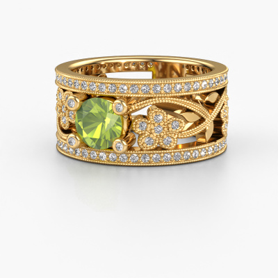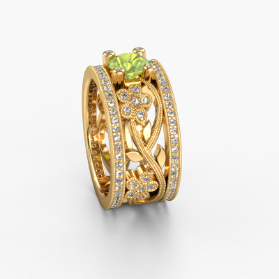 Do you have a vintage fetish? Then this gold Severine ring suits you perfectly. It's a contemporary design, based on vintage designs. A slightly romantic, extraordinary design! Even more when you customize to your liking. This graceful ring is set with exquisite peridot. As you can see, you can simply choose a gemstone that matches your style. Each gemstone is carefully selected by our merchants whom are spread throughout the world. Nothing but the best gems for our expert goldsmith! After all, it is his crowning glory!Our goldsmiths passionately create your customized ring to your liking with the utmost care. The gold ring, as shown here, can be customized using our online tool. Feel free to ask our jewel designers for assistance if you want changes made which are unavailable in our online tool. We are happy to answer your questions.After receiving your order, our goldsmiths will passionately start the creative process of making your ring in our own studio. Because we don't have a big stockpile, these costs will not be passed on to you. Our pricing is proof of that! We offer top quality jewels at lowest price, guaranteed.To make it easier for you, we offer a 30 day return policy. Check our terms and conditions.