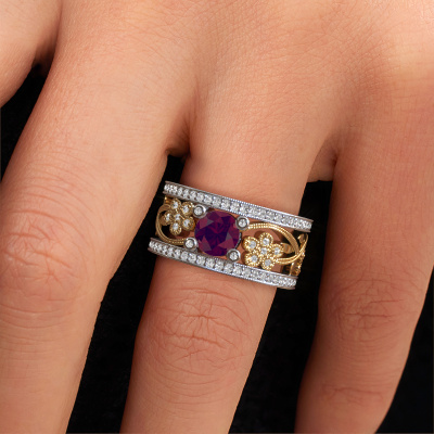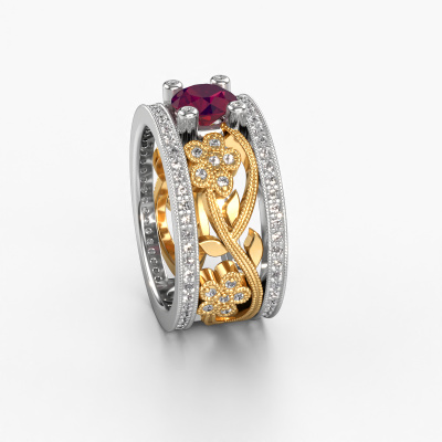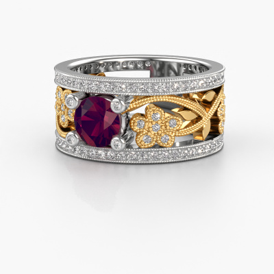 Do you have a vintage fetish? Then this white gold Severine ring suits you perfectly. It's a contemporary design, based on vintage designs. A slightly romantic, extraordinary design! Even more when you customize to your liking. This graceful ring is set with exquisite rhodolite. As you can see, you can simply choose a gemstone that matches your style. Each gemstone is carefully selected by our merchants whom are spread throughout the world. Nothing but the best gems for our expert goldsmith! After all, it is his crowning glory!Our goldsmiths passionately create your customized ring to your liking with the utmost care. The white gold ring, as shown here, can be customized using our online tool. Feel free to ask our jewel designers for assistance if you want changes made which are unavailable in our online tool. We are happy to answer your questions.After receiving your order, our goldsmiths will passionately start the creative process of making your ring in our own studio. Because we don't have a big stockpile, these costs will not be passed on to you. Our pricing is proof of that! We offer top quality jewels at lowest price, guaranteed.To make it easier for you, we offer a 30 day return policy. Check our terms and conditions.