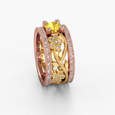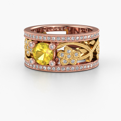 Do you have a vintage fetish? Then this rose gold Severine ring suits you perfectly. It's a contemporary design, based on vintage designs. A slightly romantic, extraordinary design! Even more when you customize to your liking. This graceful ring is set with exquisite yellow sapphire. As you can see, you can simply choose a gemstone that matches your style. Each gemstone is carefully selected by our merchants whom are spread throughout the world. Nothing but the best gems for our expert goldsmith! After all, it is his crowning glory!Our goldsmiths passionately create your customized ring to your liking with the utmost care. The rose gold ring, as shown here, can be customized using our online tool. Feel free to ask our jewel designers for assistance if you want changes made which are unavailable in our online tool. We are happy to answer your questions.After receiving your order, our goldsmiths will passionately start the creative process of making your ring in our own studio. Because we don't have a big stockpile, these costs will not be passed on to you. Our pricing is proof of that! We offer top quality jewels at lowest price, guaranteed.To make it easier for you, we offer a 30 day return policy. Check our terms and conditions.
