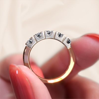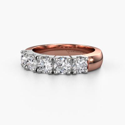 This extraordinary ring is called Rianne 5. This type of ring is known as a memoire ring, because its gemstones are set in a continuous line. This makes it easy to combine with other rings. The band of this 14 Carat rose gold ring is set in a combination of diamond and diamond 1.50 crt. You can easily choose the combination you prefer online. As you can see, a single diamond is set in this single alliance rose gold ring. The memoire ring represents collaboration. And that is precisely what these gemstones do, collaborate. Together they add a beautiful effect to the band of a classic ring! Such a meaningful ring, wouldn't you agree? All our hand selected diamonds are positioned by hand by our expert goldsmith. It's a precise task, which can only be completed successfully through the combination of pure craftsmanship and usage of the latest techniques which give it an optimal effect. To create a perfect reflection of light, all the gemstones have to be perfectly aligned in the same way. During manufacturing, the expert goldsmith will therefore monitor the reflection of light constantly to check whether the diamonds are aligned properly. This requires a skilled hand and a lot of patience but then the end product will be a true piece of art. And that is our mission!By using a combination of the latest modern techniques, combined with ancient crafting, we can make all our rings in our own studio. Each jewel is made to order. This is advantageous because we can offer you a price you won't find anywhere else.