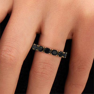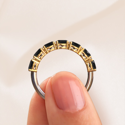 This ring called Vivienne half OVL is made of 14 Carat white gold and is set with black diamond. Are you in the market for a unique white gold ring with a modern twist? Then this ring might suit you. Simply customize to your or her liking. It suits the contemporary modern woman. This half eternity ring is set with beautiful black diamond. This has been carefully selected. Because your ring must be adorned with nothing but the most stunning gemstone. Our expert goldsmith will create your ring in our own studio, where the black diamond will be set with great care. The ring will then be polished to perfection to create a stunning ring. Because we design and deliver our own rings, we can offer you a ring at a price you won't find anywhere else. A ring is made to order, which helps prevent excess supplies, so we can make you a great price offer. We understand it feels risky, buying your ring online, but we will gladly assist in the designing process, taking your budget into consideration.Our team of talented, passionate designers add new ring designs to our online collection daily. Our objective in doing so, is to be able to offer you a wide variety of jewels. Please feel free to request a quote if you have specific wishes for your ring. We guarantee to make you an offer you can't refuse.To make it easier for you, we offer a 30 day return policy. Check our terms and conditions.