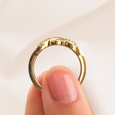 How would you describe your own style? Are you looking for something uniquely different? This infinity gold Lizan ring is astonishing! Simply customize to your or her own liking. This ring is set with brown diamond. These brown diamonds have been carefully selected because your ring must be adorned with nothing but the most beautiful gemstone. Wouldn't you agree? Our expert goldsmith will create your ring in our own crafting studios, where the brown diamond will be set with care. The ring will then be polished to perfection to give it that extra sparkle. It's a perfect ring for a woman of excellent taste!As soon as you finished designing your Lizan ring with our online tool, our goldsmiths will start their creative process of making your ring. This will be done with passion and care, according ancient crafting. On top of that, our jewels are made of eco-friendly materials. Simply customize online with our online tool, if you want any changes made. If you want specific changes made to your Lizan ring, that are unavailable in our online tool, please feel free to contact our expert designers.Because we design and deliver our own rings, we can offer you a ring at a price you won't find anywhere else. A ring is made to order, which helps prevent excess supplies, so we can make you a great price offer. We understand it feels risky, buying your ring online, but we will gladly assist in the designing process, taking your budget into consideration.To make it easier for you, we offer a 30 day return policy. Check our terms and conditions.